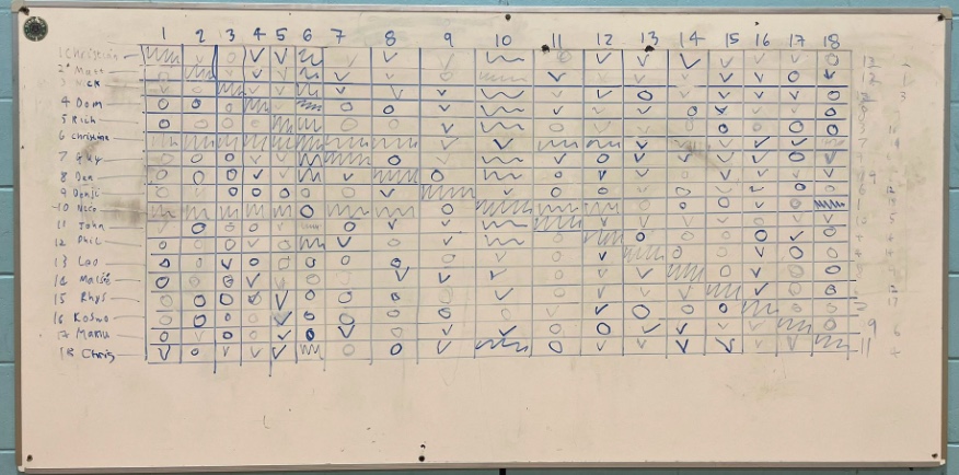 | 5 | Rhys | 5 | 3 | 3 | 4 | 1 | 4 | 0.250 | 15 | 19 | -4 |